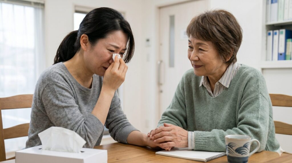 お母さん頑張ってるよ、辛いよね、泣きたいのはこっちだよね…と声をかけてくださり、正直に「辛いです」と涙ながらに全部打ち明けることができました。